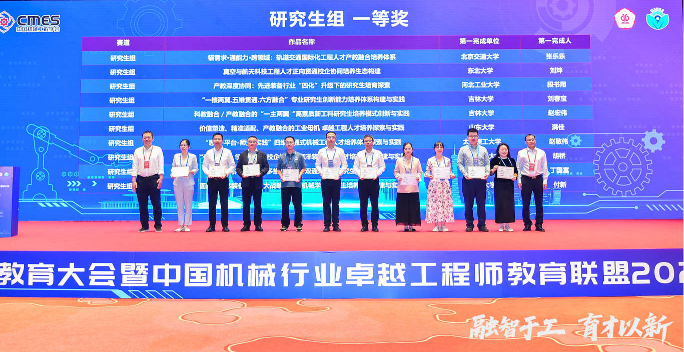 2025年9月19-21日,第二届中国机械行业产教融合教育教学创新大赛在广州举行,我院成玮教授团队的参赛作品荣获研究生组特等奖;胡桥教授团队的参赛作品荣获研究生组一等奖。
