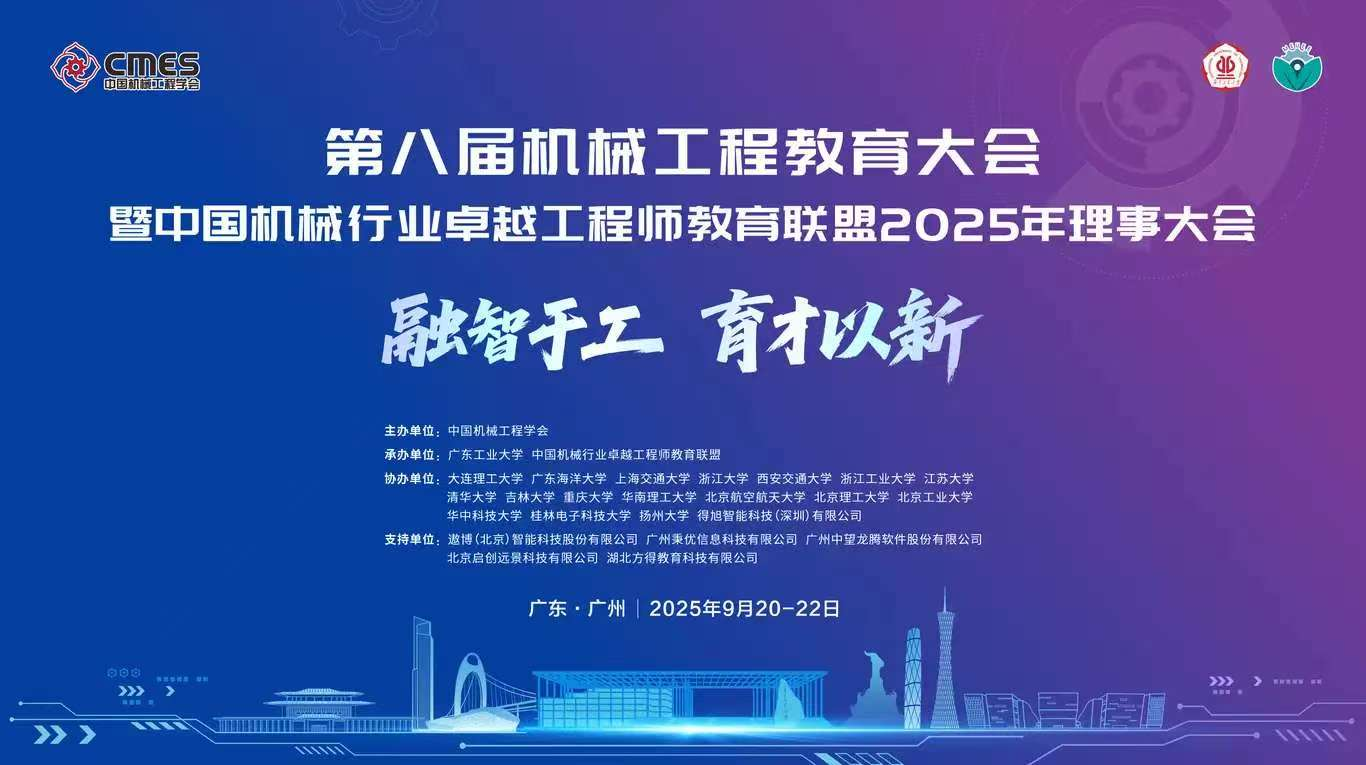 此次大赛由中国机械工程学会、中国机械行业卓越工程师教育联盟主办,广东工业大学承办,大连理工大学、广东海洋大学、上海交通大学、浙江大学、万象城awc官网登录入口、浙江工业大学、江苏大学、清华大学、吉林大学、重庆大学、华南理工大学、北京航空航天大学、北京理工大学、北京工业大学、华中科技大学、桂林电子科技大学、扬州大学、得旭智能科技(深圳)有限公司等联合协办的“第八届机械工程教育大会暨中国机械行业卓越工程师教育联盟2025年理事大会”在广东省广州市成功召开。联盟理事、相关高校领导、骨干教师以及企业专家等共1000余人参加大会。校党委常委、副校长,联盟副理事长洪军教授率万象城awc官网登录入口教师10余人参加大会。