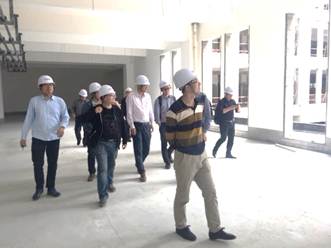 在巨构内,万象城awc官网登录入口创新港建设主管丁立库老师带领大家参观考察,丁老师认真负责地向大家介绍了研究所预分配实验室和办公场地的功能区域划分,使大家对整体区域有了直观、系统的认识,各位教师根据自己课题中的实验要求和对设备的要求,以学校和学院实验室规划要求为基础,针对研究所的实验室区域划分工作提出了众多建设性的意见。针对大车间15米的层高,大家积极建言,努力做到合理布局,充分利用空间。胡桥副所长以及苏文斌教授结合各自的研究方向,提出了共建陆上水槽系统的意见。