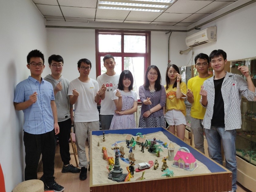 随后,大家依次分享自己挑选的6件玩具、摆放在这个位置的原因、别人摆放过程中自己的感受、最喜欢沙盘世界中的部分等等。郑老师在大家分享的过程中通过提问和交流引导大家认识自己潜在的内心世界,并为大家提出对待生活、对待自己的思考和意见:可能暂时无法理解的不和谐背后也有它存在的意义和动人的故事;试着走出去敞开心扉了解自己无意间忽略的外面的世界;试着去经历纷繁世界里的未知美好等等。活动结束之后大家互相交流彼此的感受,为沙盘世界起名字并合影留念。