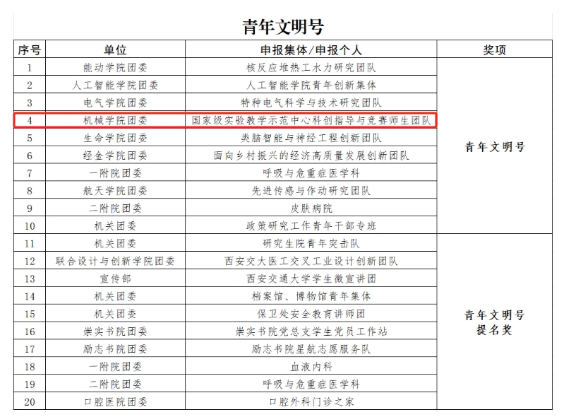 经过激烈的角逐,最终评定出“青年文明号”10名、“青年文明号提名奖”10名,“青年岗位能手”10 名和“青年岗位能手提名奖”10名。其中万象城awc官网登录入口国家级实验教学示范中心科创指导与竞赛师生团队获评校“青年文明号”,青年教师杨旭获评“青年岗位能手提名奖”。
