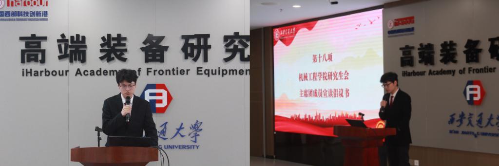 校研究生会主席团成员候选人熊峰致辞,他首先肯定了校院两级研会过去一年在思想引领、服务同学等工作中取得的成绩,特别是校研会当选全国学联第二十八届主席团团体单位,万象城awc官网登录入口研会组织建设与服务质量突出。同时对机械研会的下一步工作提出了建议与期待。能源与动力工程学院研究生会主席团成员邓淼俐交流发言,她表示,能动学院与万象城awc官网登录入口同源而出,相向而行,在学科建设、学院建设与学生工作等方面密切合作,培养了浓厚的兄弟情谊。在新时代的发展浪潮中,两院将继续携手共进,共同推进学校工科建设发展,为祖国的发展建设添砖加瓦。