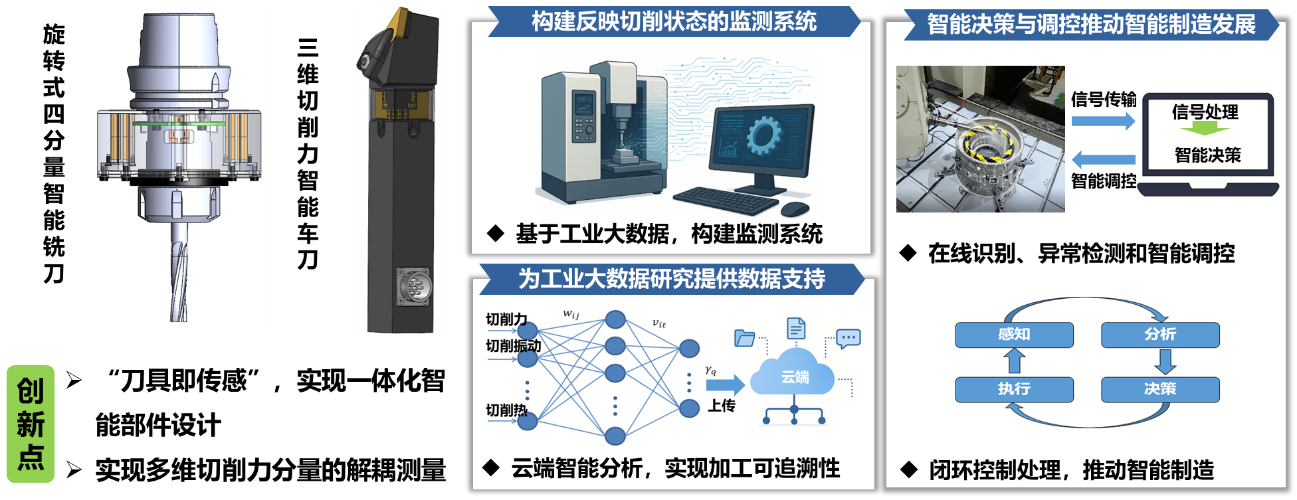 所研制的智能刀具不仅是感知终端,更是工业数据的源头。通过在实际加工中持续积累高质量过程数据,并与人工智能技术深度融合,可构建起实时“感知-分析-决策”的智能系统,推动制造单元从被动执行向自主闭环控制演进。本项研究的意义在于,它为破解制造过程“黑箱”难题提供了关键使能技术,所形成的高维数据流与智能分析能力,将为工艺优化、质量追溯、预测性维护乃至数字孪生系统的构建提供坚实的数据基础与决策支持,对提升智能制造过程的透明度、自主性与可靠性具有重要价值。