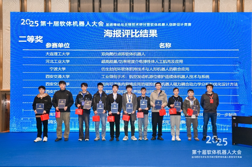 11月16日,第十届全国软体机器人大会——基础理论与关键技术研讨暨软体机器人创新设计竞赛在山东青岛哈尔滨工程大学青岛创新发展基地圆满落幕。我院张进华教授课题组学生肖雅轩、王一辰及毛国新三人凭借出色且创新的海报设计作品,在海报设计赛道中脱颖而出,斩获二等奖,为课题组及学院赢得荣誉。