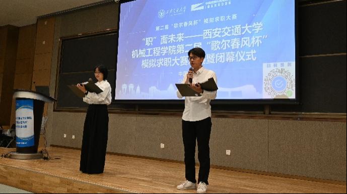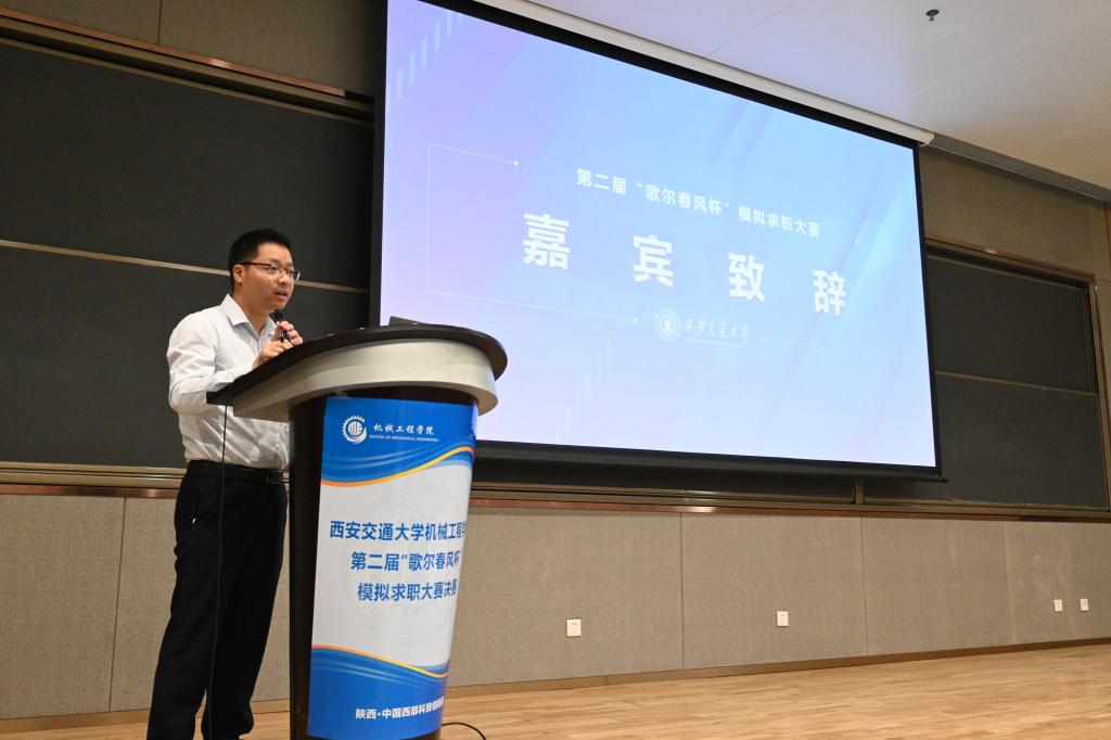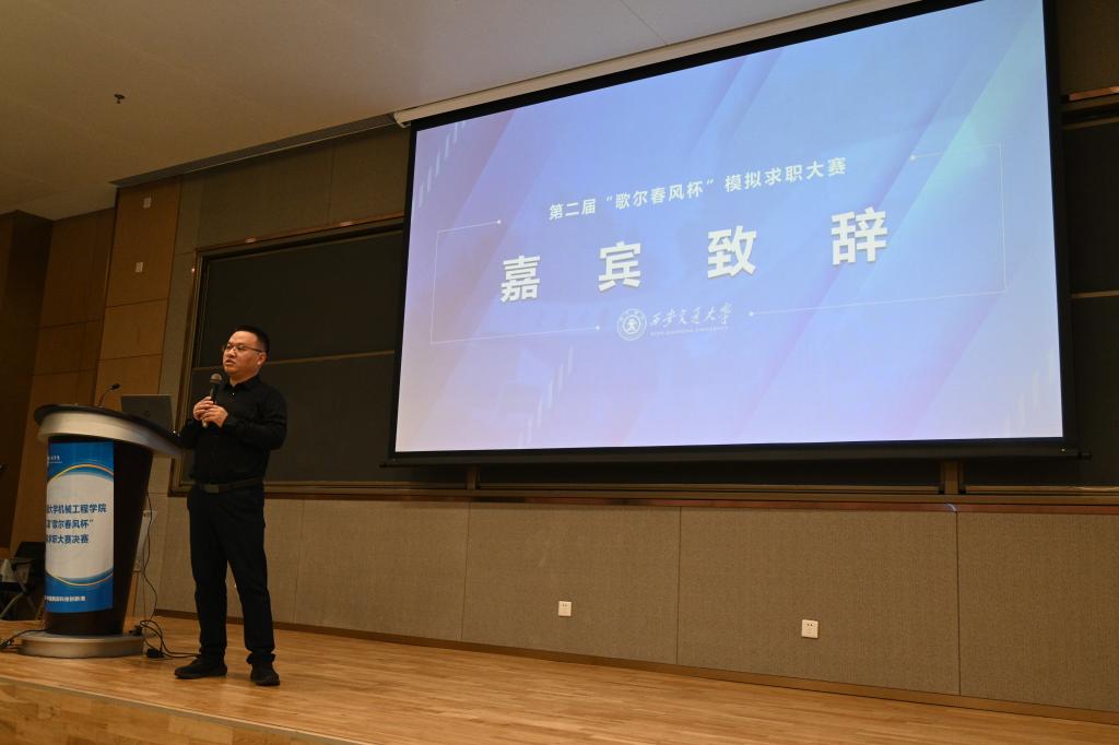 孙飞在致辞中回顾了歌尔股份有限公司与万象城awc官网登录入口在校企合作方面的深厚渊源,强调了歌尔公司在行业内的领先地位,希望未来与交大继续保持合作,共同发展。包凯表示,“歌尔春风杯”模拟求职大赛不仅是一场展示与比拼的竞赛,更是一个启迪创新、促进实践、增强就业意识的宝贵平台。它既为同学们提供了展示创新精神和实践能力的机会,也为校企的交流合作搭建了重要桥梁。