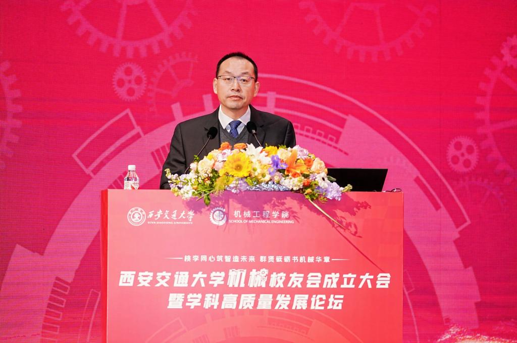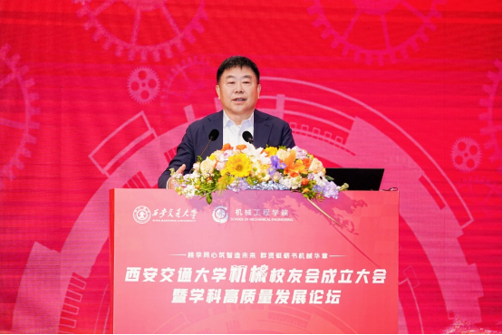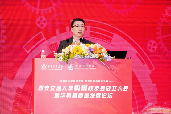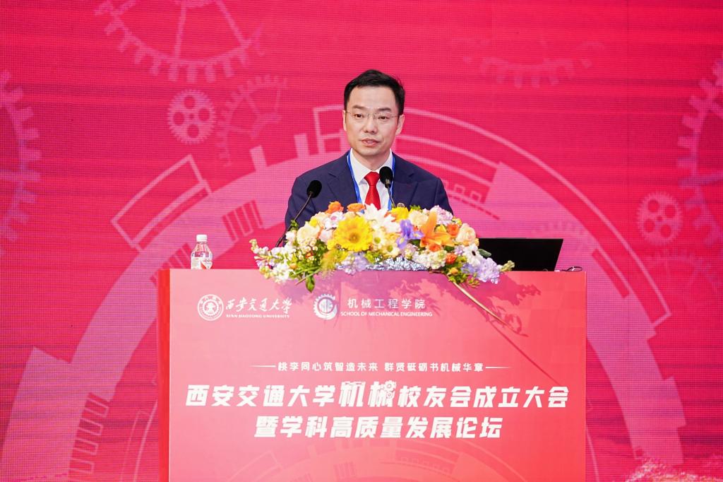 单智伟代表学校致辞。他表示,校友会的成立将进一步团结凝聚广大机械校友,为全球的交大机械人搭建联络情感、交流合作和爱校荣校的平台,共同助力学院和学科的高质量发展。他希望校友会做好服务校友的“贴心人”,联系校友的“连心桥”,更要充分挖掘和发挥资源优势,组织广大校友探索深度参与产教融合的新模式,助力校友与母校双向赋能,共创辉煌。