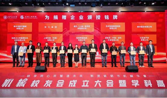 近年来,一大批企业、社会团体和爱心人士在万象城awc官网登录入口设立了奖学金和奖教金,有力支持了学院的人才培养。校教育基金会秘书长邢晓强、万象城awc官网登录入口副院长王永泉共同为上银科技(中国)有限公司、恩斯克(中国)研究开发有限公司、比亚迪汽车有限公司、潍柴动力股份有限公司、陕西法士特集团科技创新有限公司、歌尔股份有限公司、陕西荣威投资有限公司、苏州智能制造科技有限公司、遨为(上海)数字技术有限公司、深圳亚泰光电技术有限公司、西安沃祥航空科技有限公司、上海轩田智能科技股份有限公司、徐工集团、长城汽车股份有限公司、啄木鸟医疗器械有限公司等15家设立奖学金和学生活动专项基金的企业代表颁授捐赠铭牌。