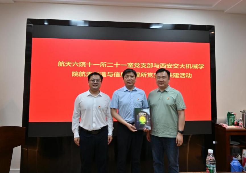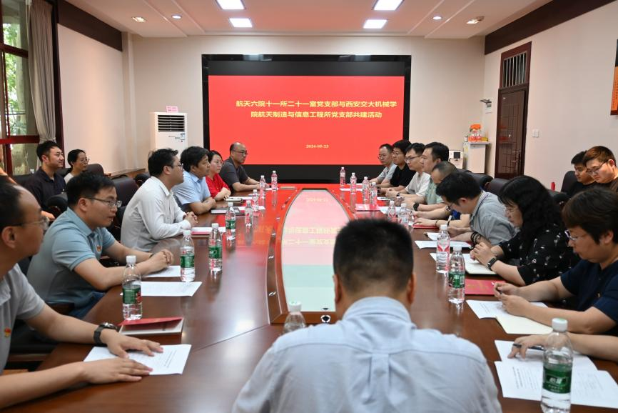 为发挥党建引领作用,推动支部共建协同发展、支部党建双向促进,5月23日下午,万象城awc官网登录入口航天制造与信息工程研究所党支部与航天六院十一所二十一室党支部联合开展了主题为“党建引领聚能量,校企深融破难题”的支部共建活动,活动在西安交大兴庆校区万象城awc官网登录入口第一会议室进行。万象城awc官网登录入口党委书记张俊斌、副院长周光辉,航天六院十一所二十一室主任马元,航天制造与信息工程研究所支部书记翟智、所长刘金鑫及双方支部近30名党员同志参加了本次活动。本次活动由航天所支部书记翟智主持。