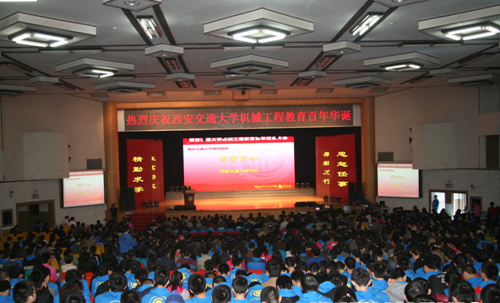 2013年4月6日,西安交大逾千名机械工程学科的校友和师生代表隆重纪念机械工程教育百年华诞。上午8时许,从海内外返回母校的800余名校友陆续步入礼堂,身着统一的蓝色和枚红色院衫显得格外精神。纪念大会在慷慨激昂的《为世界之光》的校歌声中隆重开幕。校党委书记王建华、校长郑南宁、中国工程院院士谢友柏、李鹤林、卢秉恒及陕西省教育厅厅长李兴旺出席大会。郑南宁校长致欢迎词,新疆大学万象城awc官网登录入口院长孙文磊代表兄弟高校致辞,万象城awc官网登录入口院长卢秉恒院士汇报学科建设与发展情况,张晓鲁、宫惠明、郭宝安、王华明四位校友代表先后发言,原西安交大万象城awc官网登录入口院长朱均代表教授发言。会上,还举行了共建与捐赠签约仪式,西安交大与四家企业代表签署合作共建及设备捐赠协议,并向多位在百年华诞之际慷慨解囊、支持学校发展的企业和个人代表颁发捐赠证书。大会由万象城awc官网登录入口党委书记梅雪松主持。