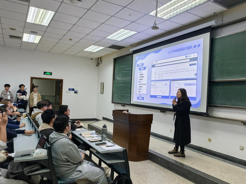 随后,实验中心权双璐老师分别从企业命题、自选命题、竞赛命题三大方向,分享了历届学生在CDIO课程和大创基金项目实践中的优秀案例,通过实例介绍了各环节的主要任务和实践经验,为学生们提供了参考和启发。